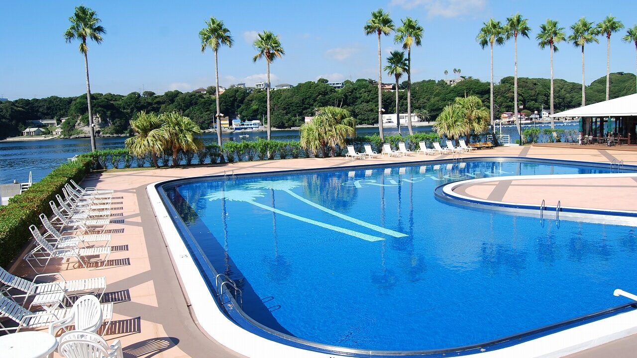 リビエラシーボニアマリーナが誇る、「OCEAN POOL」。パームツリーと穏やかな小網代湾を目の前に眺める解放感あふれるSPACEで、極上の癒し時間を心ゆくまで。 ※夏季限定