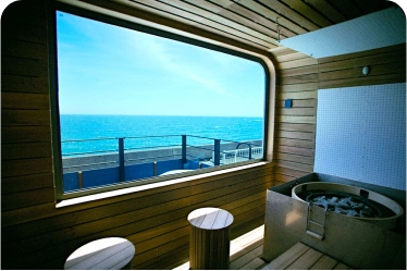 「OCEAN」をテーマにしたサウナは、まるで船上にいるかのような完全貸切り制のプライベートSPACEです。相模湾の水平線やサンセット・星空を眺めながら波の音に包まれて、心ゆくまで温まり「ととのう」それぞれのKEY POINTへ。