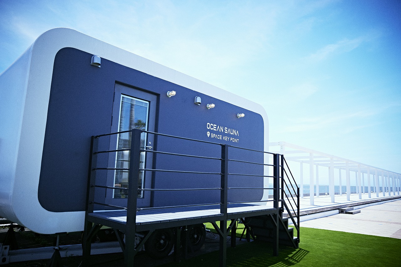 前面ガラス窓のオーシャンビューの客室からは、刻々と変化する幻想的なサンセットなど、時間の移ろいに合わせた地球・宇宙を感じる非日常空間を映し出せます。プライベートテラスにはバーデプールやBBQセットも完備し、ペット同伴での撮影も可能。隣接のサウナでは海を眺めて「ととのう」シーンを描けます。
