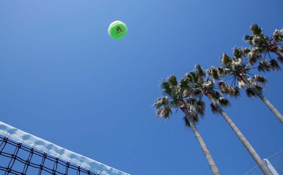 テニスコートは、人工芝に砂を混ぜたオムニコートを使用した本格派。潮風が心地良く感じられます。