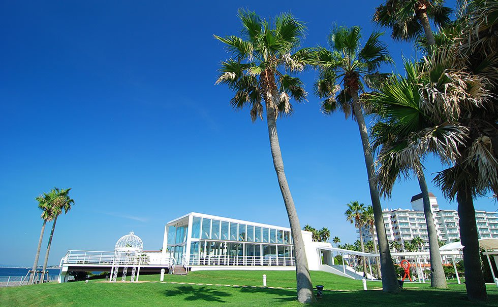 太陽が降り注ぐ大空の下、果てしなく続く青い海と広い芝生。他にはない最高の解放感は、ここならでは。白いガゼボ、ガラス張りのチャペル。白亜の2階建てゲストハウス、手入れの行き届いたプール。これら全てが海に面したガーデンへと繋がっているため、オープンエアの素晴らしさを存分に満喫できます。