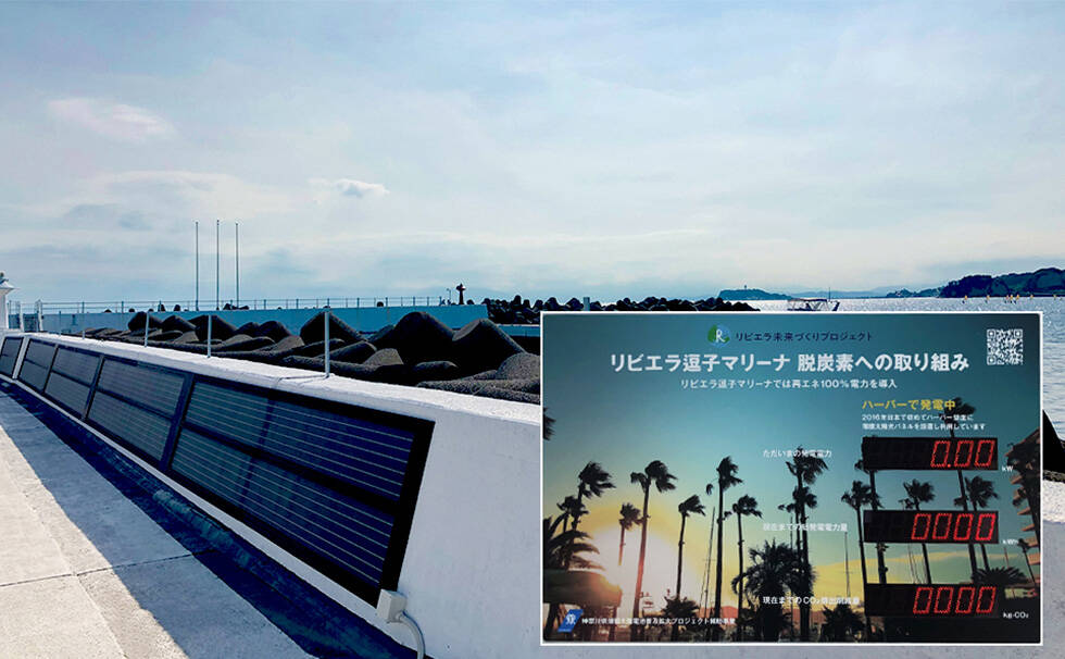 再生エネルギーの普及拡大プロジェクトの一環として神奈川県と協力し、リビエラ逗子マリーナの岸壁にマリーナ岸壁への設置は日本初となる薄膜太陽光パネルを設置。